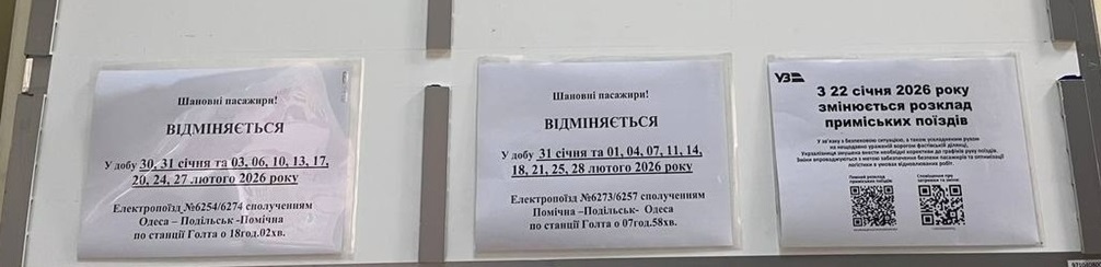 Але станом на початок січня 2026 року приміське сполучення з Одесою відновлено.