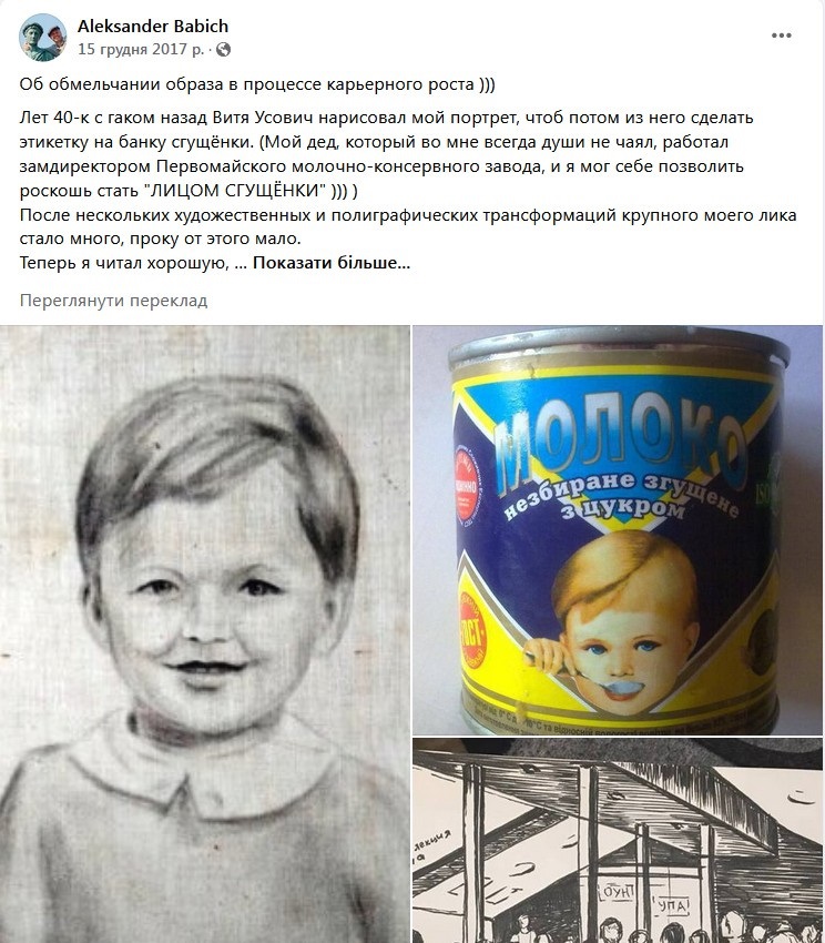 Наприкінці 2017-го року одесит Олександр Бабич, історик, краєзнавець та екскурсовод, який працює в одеському екскурсійному агентстві «Тудой-Сюдой», поділився дописом на своїй сторінці в фейсбуці, де розповів, що він і є той хлопчик зі згущенки. Для підтвердження додав той самий портрет олівцем 1975-го року.