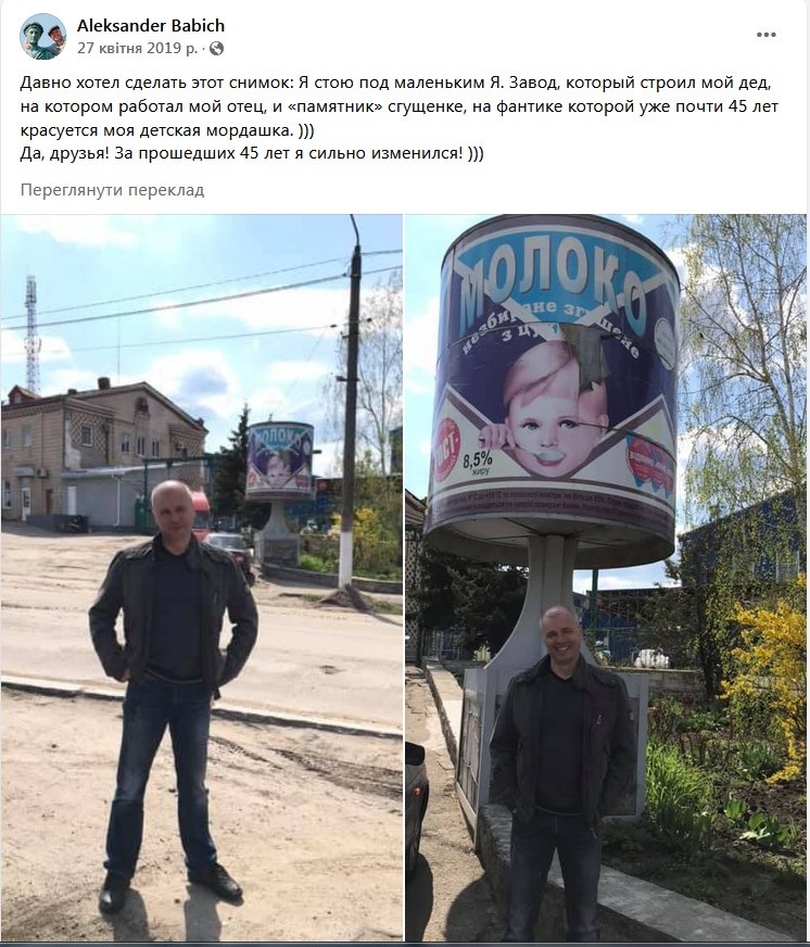 Двома роками пізніше одесит відвідав Первомайськ та здійснив свою давню мрію: сфотографуватися поряд із величезною банкою згущенки біля ПМКК — із собою маленьким. Усі мали змогу побачити, як змінився «хлопчик зі згущенки» за 45-ть років.
