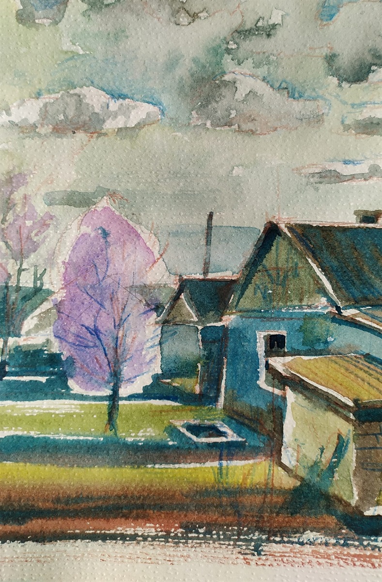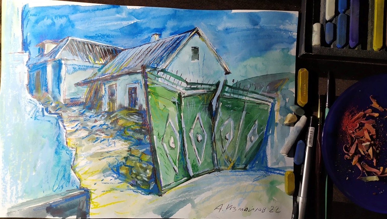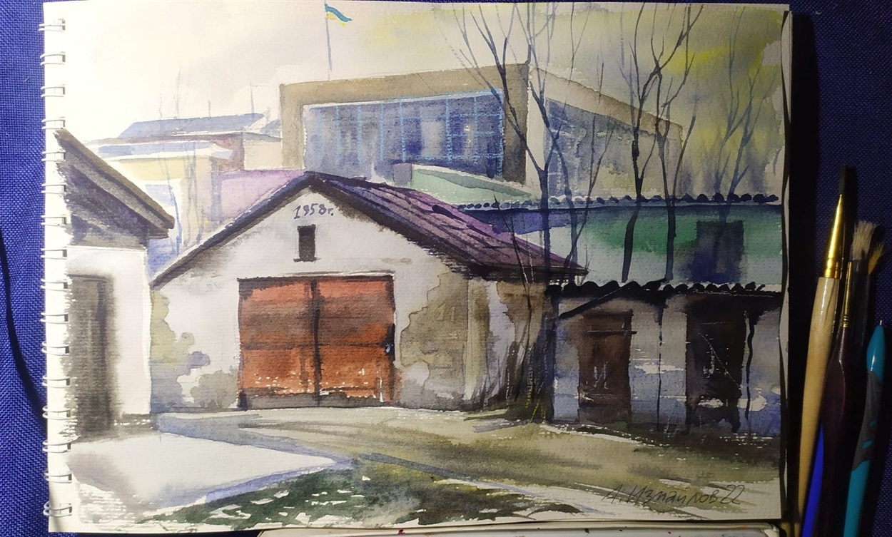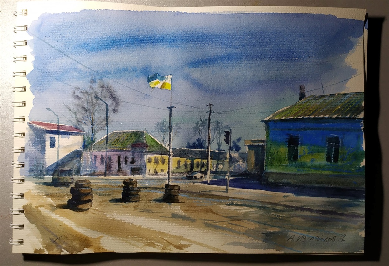 — Так. В перший день я поїхав на роботу, забрав звідти всі цінні речі. І цілий день сидів вдома і малював. Навіть є перший малюнок — акварель «Тривожне небо над моїм домом». Саме 24 лютого я його й малював.