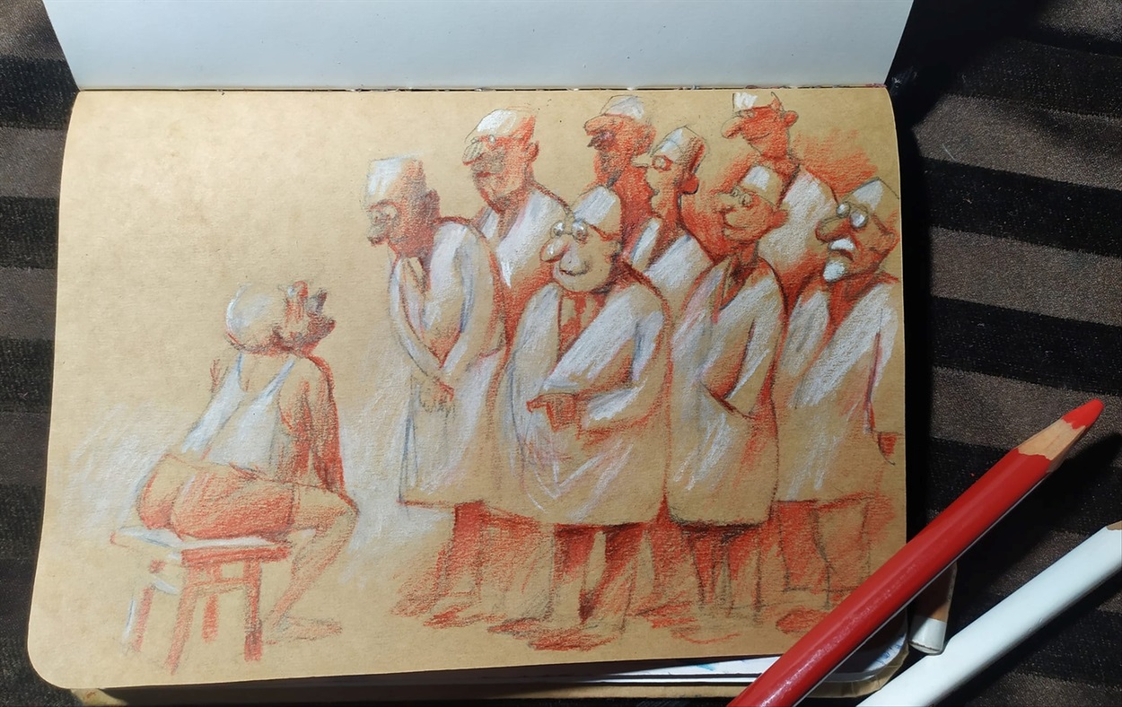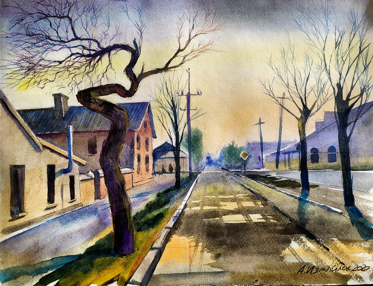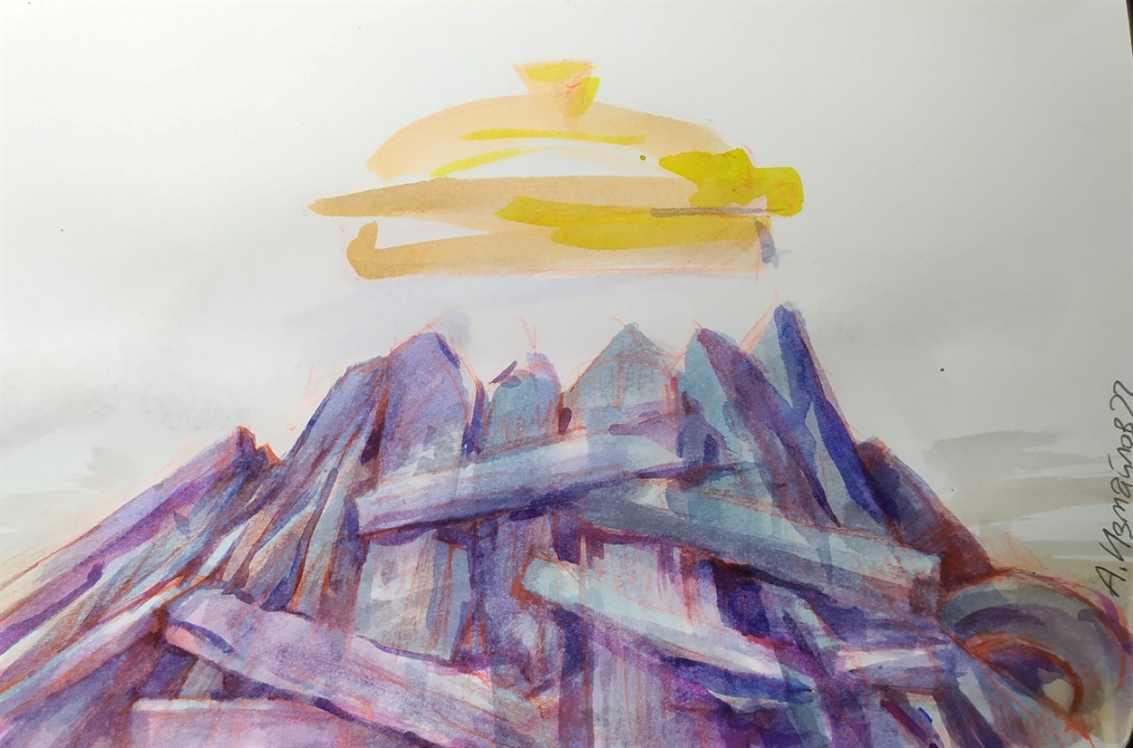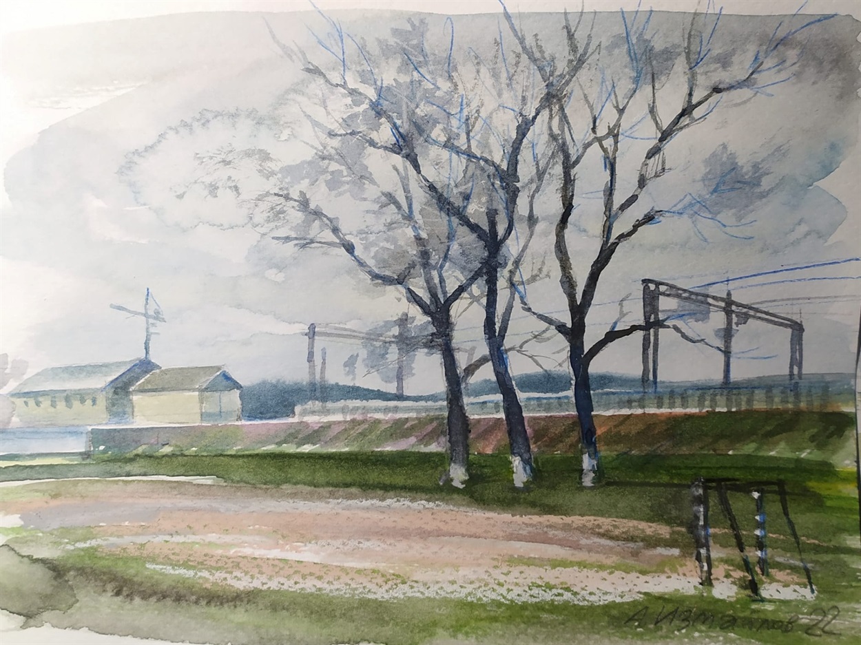 — Так. В перший день я поїхав на роботу, забрав звідти всі цінні речі. І цілий день сидів вдома і малював. Навіть є перший малюнок — акварель «Тривожне небо над моїм домом». Саме 24 лютого я його й малював.