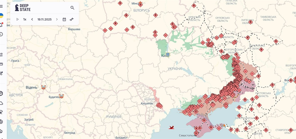 - DeepStateMAP — це інтерактивна онлайн-мапа, створена громадською організацією DeepStateUA, яка візуалізує перебіг російсько-української війни. Вона показує поточну лінію фронту, тимчасово окуповані території, звільнені території, напрямки атак, розташування російських військ, аеродромів, штабів та іншу оперативну інформацію, що збирається з відкритих джерел.