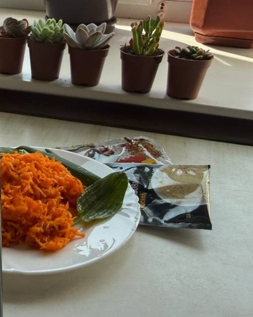 Дуже лаконічний і на диво смачний салат із двох основних інгредієнтів: морква і сирок. А ще можна додати яйця, терті на тертку, тоді вийде закуска під колоритною назвою «одеська оригіналка». Цей яскравий салат із цікавим смаком — чудова знахідка в холодний сезон, із задоволенням їстимуть навіть ті, хто зазвичай не полюбляє овочі.