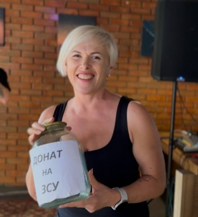 Пані Ольга нагадала про тих, хто сьогодні захищає країну, й запустила баночку для збору коштів на ЗСУ. Вона «мандрувала» столиками, а люди кидали гроші так природно, ніби це було частиною концерту. До речі, у гурта теж була своя скринька для збору. Тож присутні донатили скрізь.