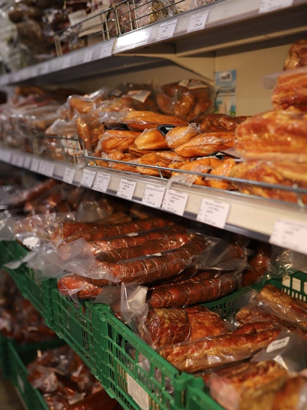 У холодильному складі окремо виділений підвідділ заморожених продуктів. Незабаром планують виокремити також рибний відділ, адже в асортименті є багато морепродуктів, які не вміщуються фізично не вміщуються в залі, тож на вітрині наразі представлені тільки найходовіші товари.