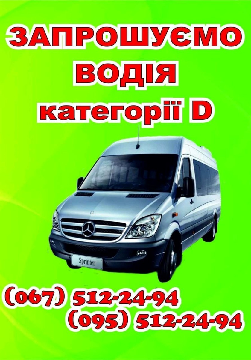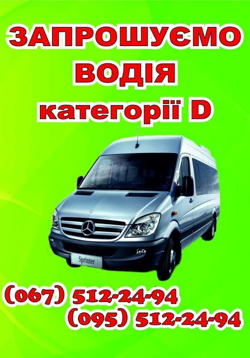 - Запрошуємо водія категорії D. 0675122494, 0955122494.