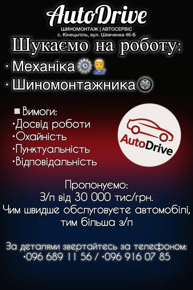 - До автосервісу на постійну роботу запрошуємо автослюсаря та шиномонтажника з досвідом роботи. Пропонуємо гарні умови праці та достойну заробітну плату. Можливе офіційне працевлаштування. З/п від 30 000 тис/грн. 0966891156