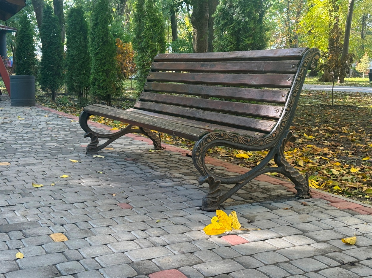 Серед ворохів осіннього листя замислилися міські гойдалки, дитячі гірки та паркові лави.