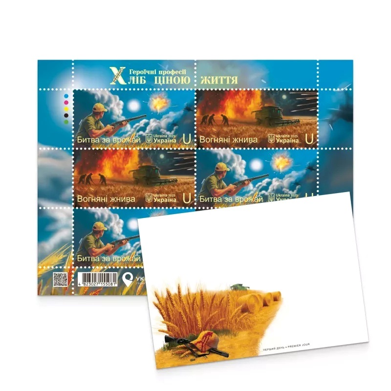 Укрпошта продовжує серію «Героїчні професії», вшановуючи людей, чия праця не припиняється навіть в умовах війни. 26 листопада 2025 року національний поштовий оператор вводить в обіг новий поштовий випуск «Героїчні професії. Хліб ціною життя», присвячений незламним українським аграріям.