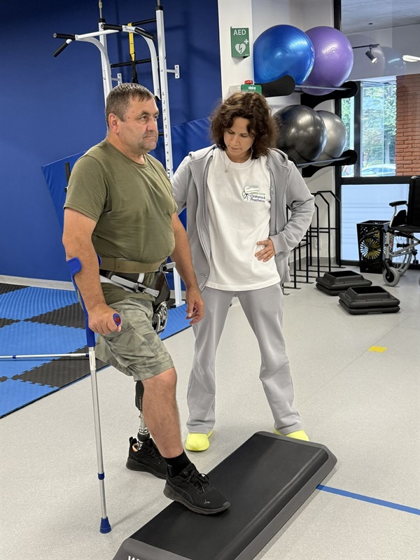 Протезист та фізичний терапевт працюють в парі, що дозволяє вчасно коригувати протез для максимального комфорту пацієнта. Вже за кілька днів після зняття мірок та виготовлення протеза людина робить перші кроки — фізіологічно правильно та мінімізуючи ризики травмуватися.