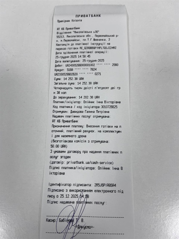 Ці кошти підуть на комплектуючі для виготовлення безпілотного наземного транспортного засобу для підрозділу безпілотних систем 159-ї окремої механізованої бригади.