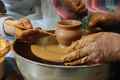 По малюках помітно, що все це для них вперше: працюють мовчки, слухняно повторюючи рухи майстра. Дивовижно, як швидко магія перетворюється на цілком реальні вироби: глечики, мисочки, вази.