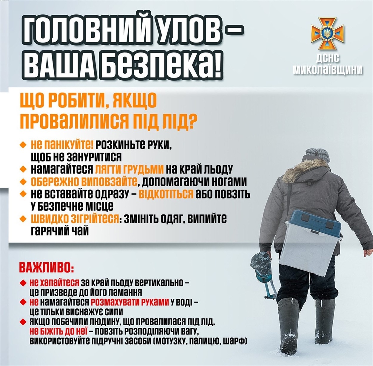 Батьки! Поясніть дітям небезпеку виходу на лід. Бережіть життя — у разі біди телефонуйте «101».