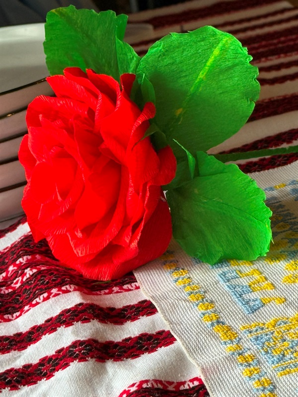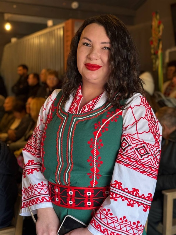 «Займаюся бісероплетінням 12 років. Починала з найпростішого, а тепер вже я дійшла до того, що зробила болгарські троянди. Біла символізує чистоту, новий початок, надію. Червона троянда — це кохання. Дуже цікаво було працювати, це мої перші в житті брошки. Щаслива, що я дотична до цього свята, радію, що наша українська мова і болгарська переплітаються. І традиції теж переплітаються: сурвакання схоже на посівання».