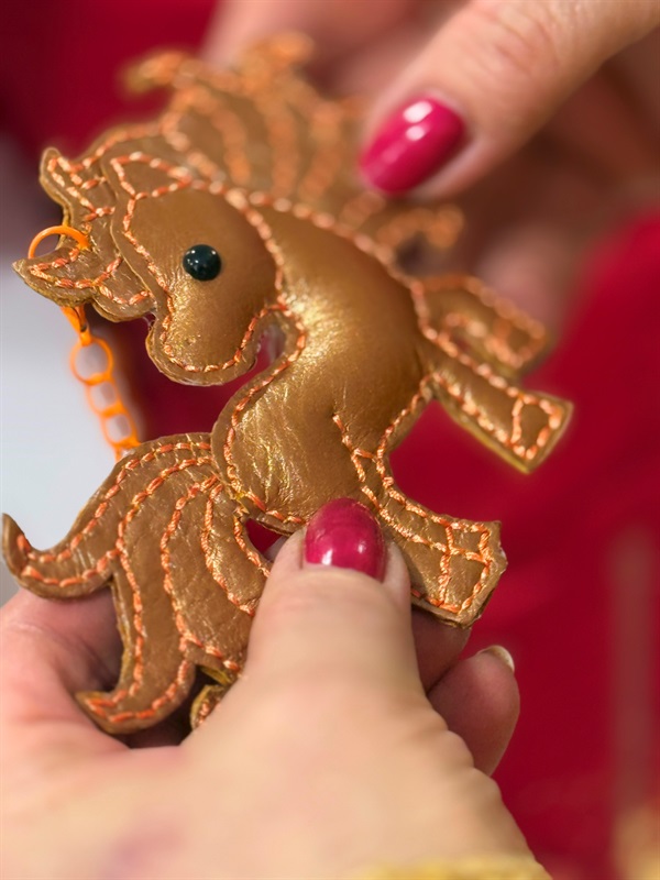 Майстриня Вікторія Курдюмова не перший рік виготовляє шкіряні брелочки: приносить сувеніри на ярмарки до свят, тож багато хто з первомайців має такий файний дармовис ручної роботи. І не тільки у Первомайську люди ходять з брелоками, виготовленими пані Вікторією: сувеніри подорожували навіть до Мальти, де теж були представлені на благодійних ярмарках на підтримку України.