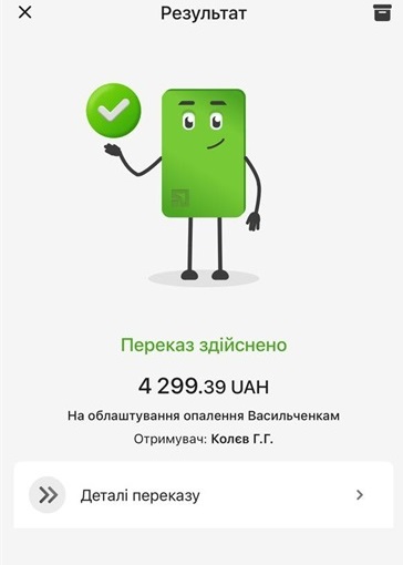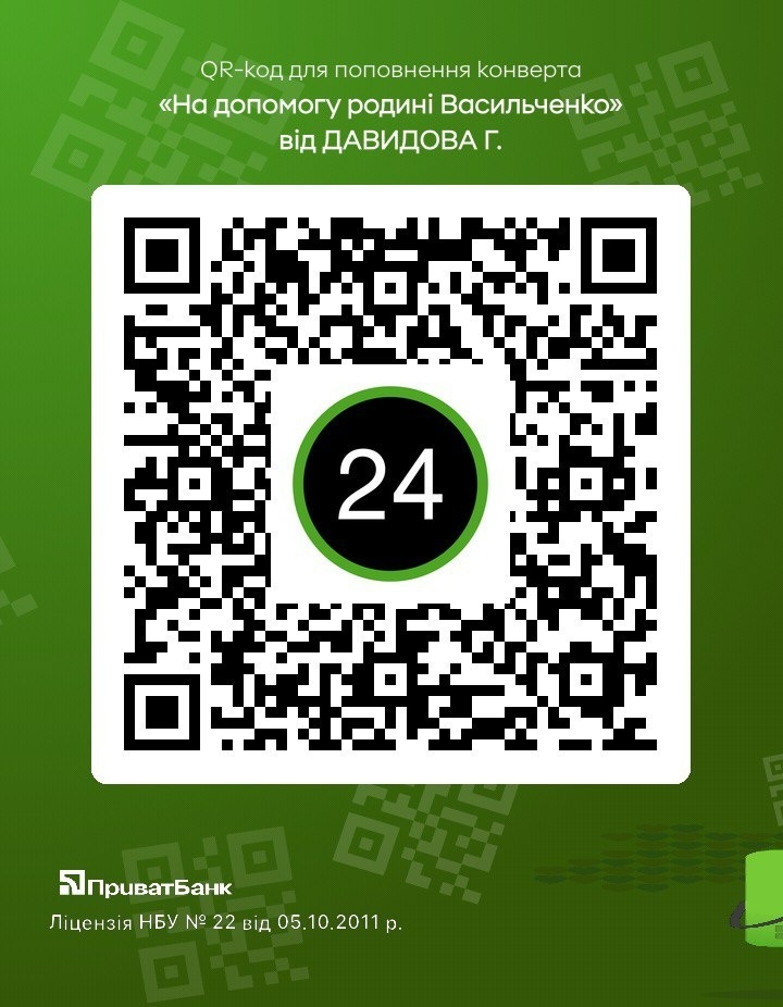 - Номер конверта: 5168752153619385, на ім'я головної редакторки Гарду Галини Давидової.