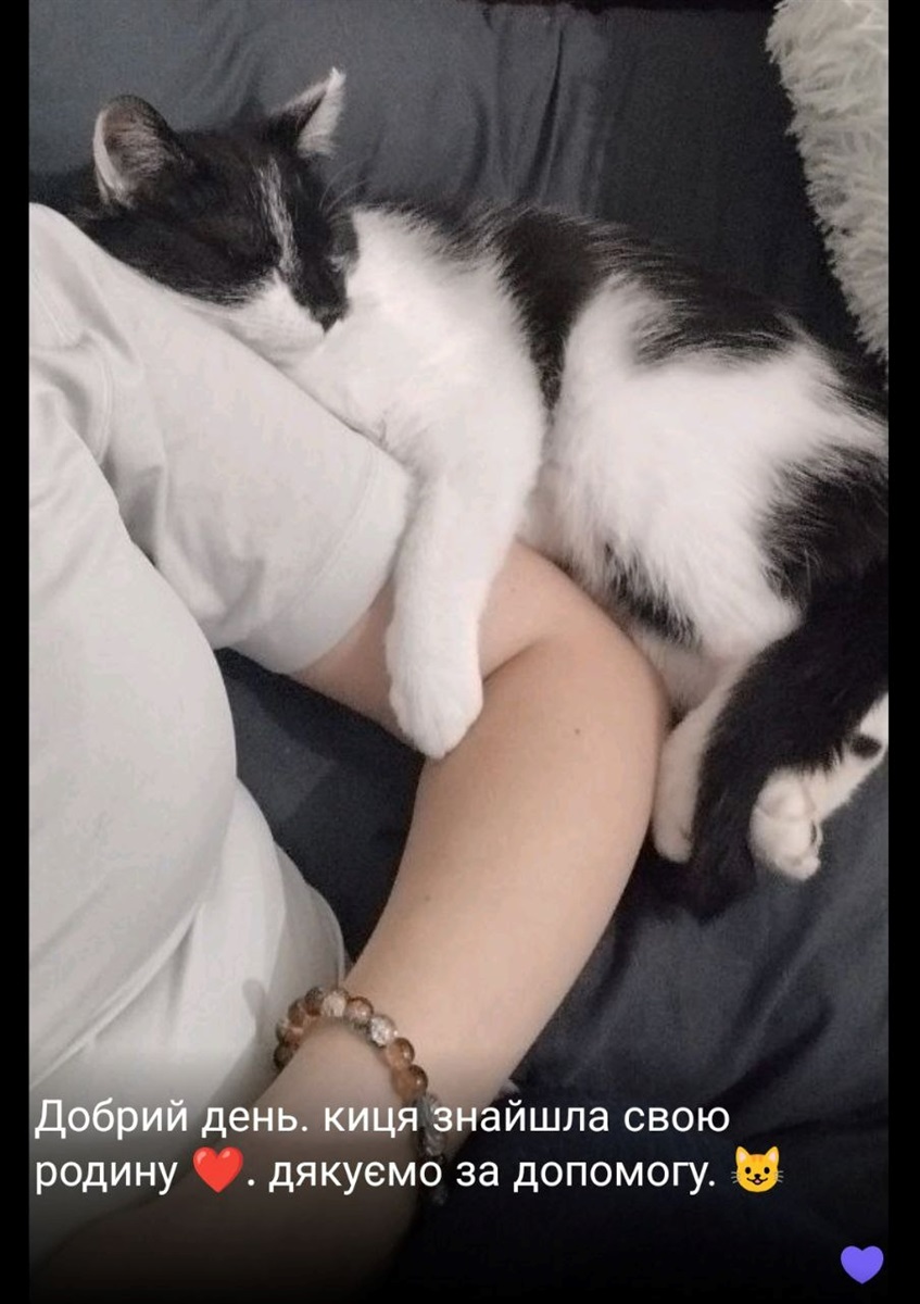Гарна чорно-біла зеленоока киця потребує дбайливої родини. Спокійна, чемна, лагідна, вік 7 місяців. Стерилізована, знає лоток. Якщо мрієте про муркітливу подругу, візьміть кицю до себе. Зробимо світ теплішим з Гард.City.