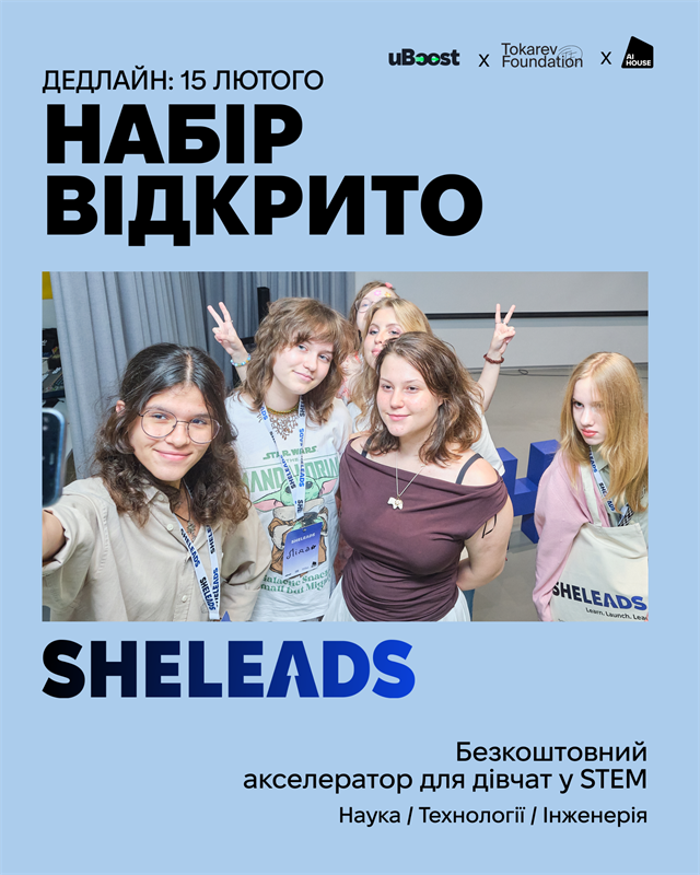 В Україні відкрито набір на SheLeads 2.0 — другу хвилю безоплатного освітнього акселератора для дівчат віком 16–22 років, які цікавляться STEM (наукою, технологіями, інженерією), планують карʼєру в цих сферах або працюють над власними проєктами. Записатися можна до 15 лютого 2026 року.