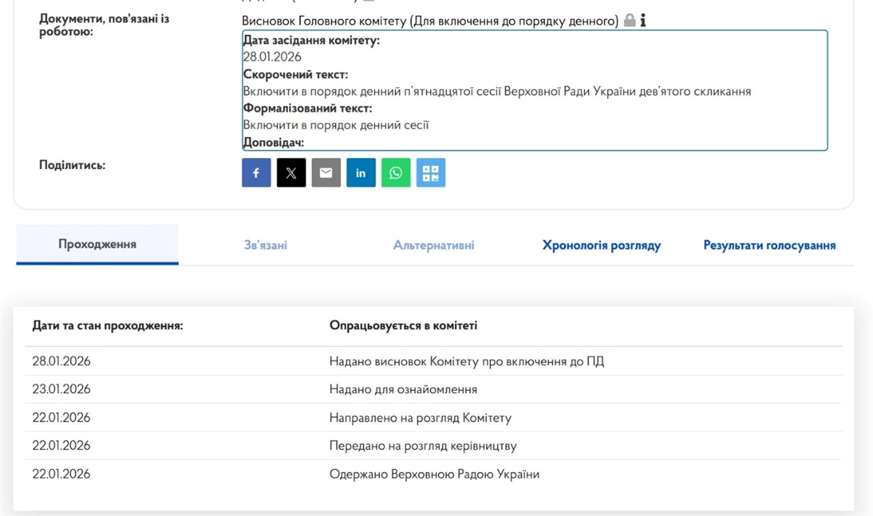 Наразі документ пройшов стадію розгляду у профільному комітеті та рекомендований до включення у порядок денний сесії Верховної Ради.