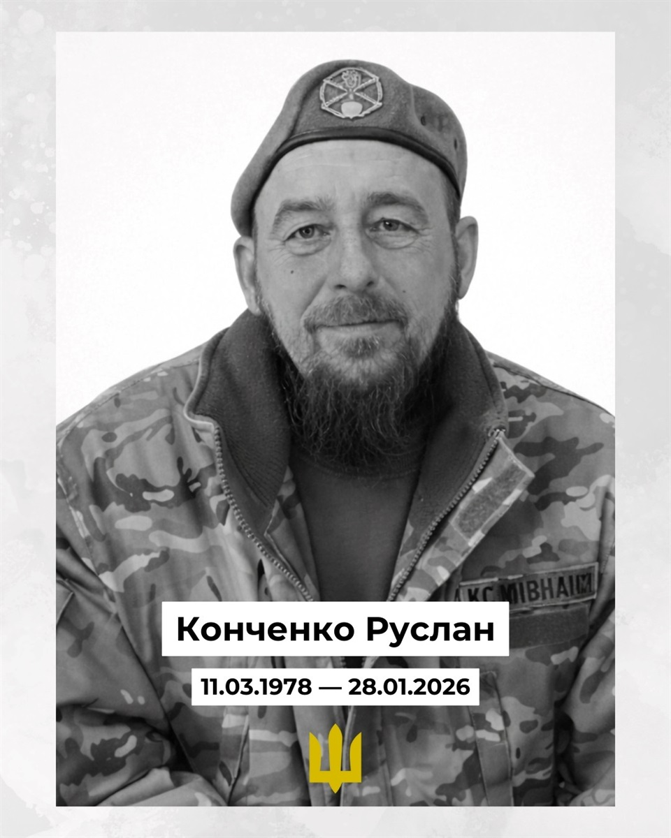 Руслан Конченко, 47-річний старший механік-водій мотопіхотної роти мотопіхотного батальйону, помер у харківській лікарні 28 січня 2026 року від кроволиливу у мозок.