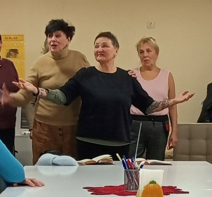 — Перша половина заняття — це розминка. Ми робимо тіло гнучким, знімаємо стрес, працюємо над диханням. Усе, що потрібно для театру, — пояснює вона. — А потім — історії. Чесно, процес не швидкий. Але я відчуваю, що це потрібно. І мені це приносить задоволення. Я бачу, як люди відкриваються.