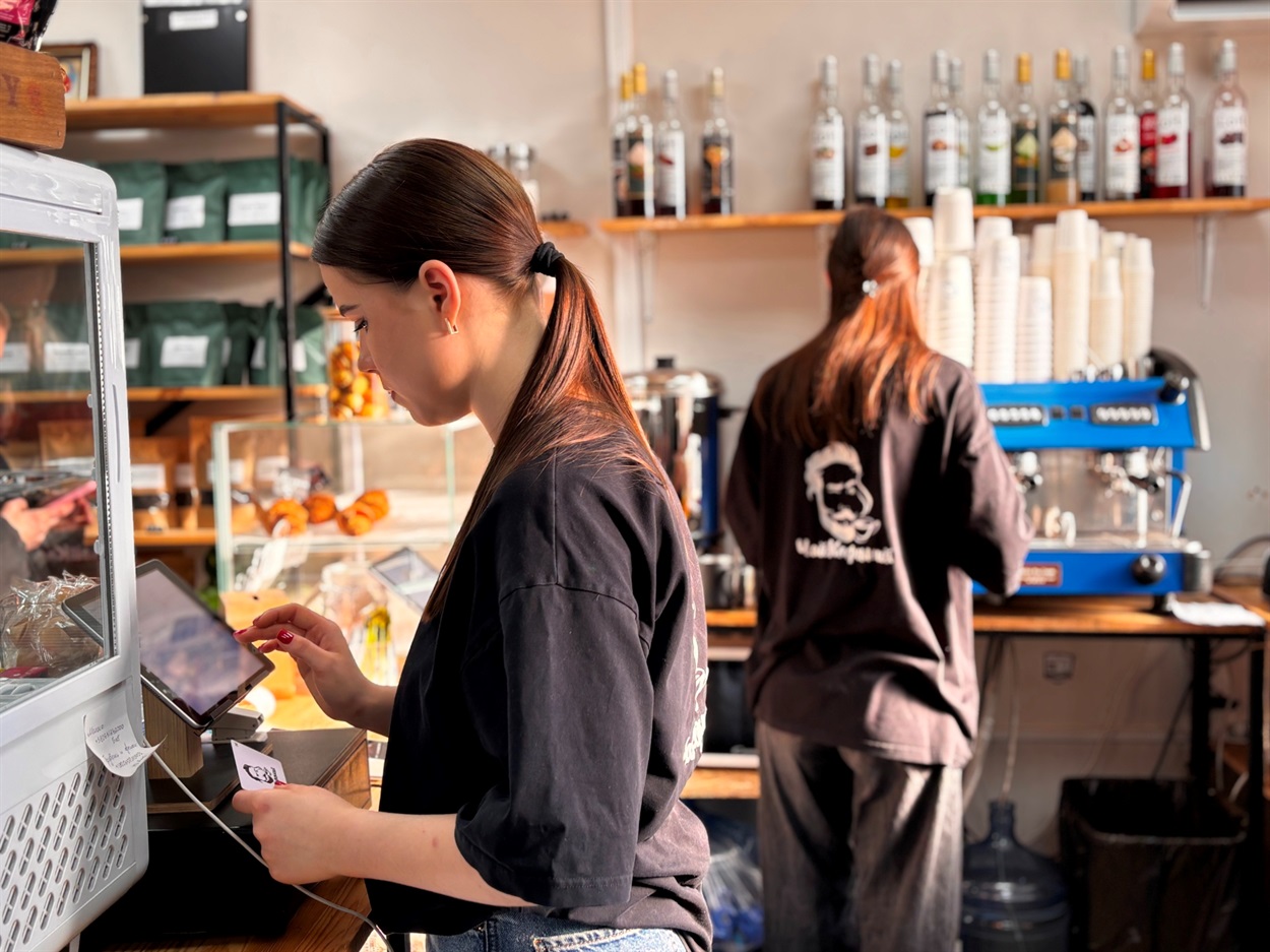 «ЧайКофський» в центрі Первомайська починає роботу о 7-й. Я підходжу о 6:45, а двері вже відчинені і бариста Вікторія готує техніку до нового робочого дня.