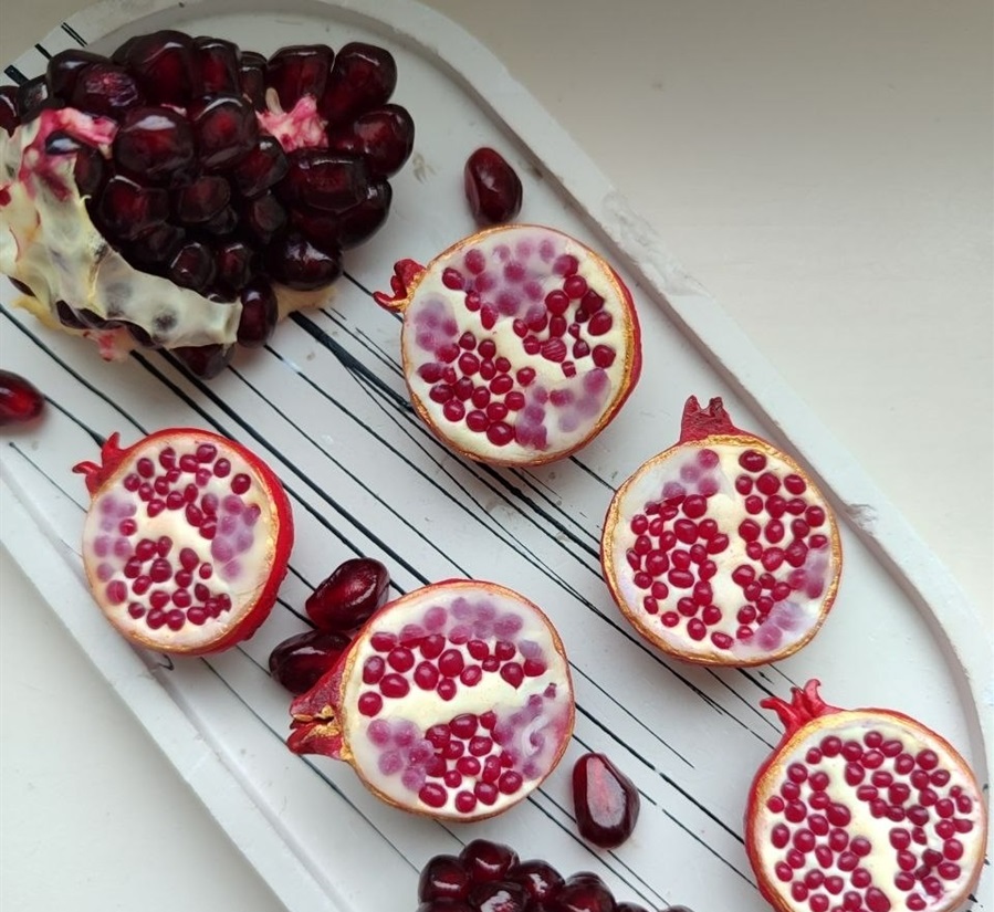 — Кожну деталь я роблю сама. Наприклад, у гранаті — кожну зернинку ліплю окремо, — розповідає майстриня.