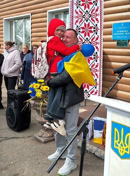 Прохолодної квітневої днини в центрі села збиралися люди із квітами, повітряними кульками й прапорами. Хмарний день яскрів жовто-синіми барвами. Грушівчани схвильовано перемовлялися, очікуючи на повернення свого захисника.
